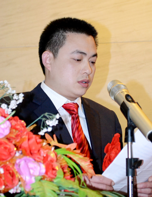 我是萬(wàn)三經(jīng)理王春生,我很激動(dòng)能作為總經(jīng)理最高貢獻(xiàn)獎(jiǎng)代表在此發(fā)表感言。首先要感謝公司給予我展示自我與實(shí)現(xiàn)自我價(jià)值的平臺(tái)。