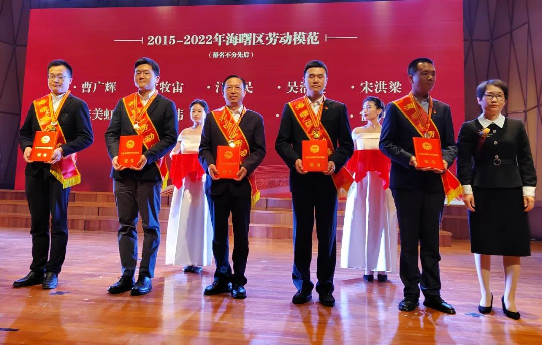 勞動創(chuàng)造幸福,實(shí)干成就偉業(yè)。2023年4月26日,海曙區(qū)慶祝五一國際勞動節(jié)暨勞模先進(jìn)表彰大會在寧波音樂廳舉行。江徽公司總經(jīng)理江中民榮獲“海曙區(qū)勞動模范”光榮稱號;江徽公司執(zhí)行總經(jīng)理段輝良榮獲“海曙工匠”光榮稱號。